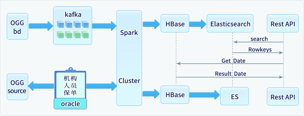 分(fēn)布式存儲采用(yòng)HB"≠ase和(hé)ElasticSearch。HBase存儲φ∞合并後的(de)寬表數(shù)據。ElasticSearch用(yòng)來(lái)建立$÷查詢索引,提高(gāo)數(shù)據查詢效率。